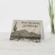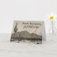 A frente deste design de cartão de saudação temático de aniversário de estilo vintage apresenta uma representação de uma cena do deserto, incluindo cactos e montanhas, juntamente com uma mensagem personalizada. O dentro apresenta uma mensagem de saudação personalizável. Um cartão de cumprimentos de aniversário como este pode ser usado para enviar desejos de aniversário a alguém especial.