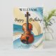 Os músicos vão adorar este elegante cartão de aniversário, com um violino num pano de fundo de turquesa, falsa ouro e espirais brancas, num estilo de aquarela. Sem dúvida, ao acertar a nota com violinistas e amantes de música, a carta pode ser personalizada com um nome e uma mensagem individual.