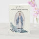 Esta é uma bela imagem da Virgem Maria, Nossa Senhora da Graça com um fundo de renda e flores azuis abaixo. Todos os textos e fontes podem ser modificados.