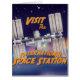 Estação Espacial Internacional ou ISS orbitando acima do planeta Terra. Cartoon ISS. Estação Espacial Cartoon orbitando a Terra com uma Auora Abaixo.