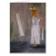 Uma jovem senhora está tentando na roupa da sua mãe. Equilibra nos calçados de tamanho grande do salto alto, com um chapéu grande sobre sua cabeça, como ela amarra seu avental. Esta pintura começada com um instantâneo de uma menina aproximadamente ajudar para fora seus pais atrás das cenas de uma cabine da comida na festa de Santa Barbara. Estava amarrando acima de um grande avental da preferencialmente. Em minha imaginação eu movi a cena para um quarto, adicionei um espelho completo do assoalho, e dei-lhe alguma roupa mais desproporcionado. Todo o isto conduziu a esta pintura do estúdio.