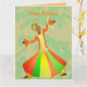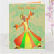 Este lindo cartão de aniversário apresenta uma dançarina afro-americana vestindo um vestido laranja, verde e amarelo.