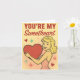 Celebre o amor clássico com este encantador cartão do Dia dos Namorados “Você É Meu Amor”! Com uma mulher sorridente em estilo retrô vestindo um vestido rosa segurando um coração vermelho ousado, cercada por explosões de estrelas divertidas em um fundo amarelo suave, este design irradia calor, nostalgia e afeto. Perfeito para namorados, cônjuges ou qualquer pessoa que aprecie romance vintage, este cartão transmite amor atemporal com um piscar de olhos e um sorriso.