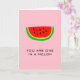 Este cartão de saudação de estilo minimal chic amoroso apresenta uma ilustração de desenho animado de uma seção de fruta de melão vermelho-verde e o texto personalizado "você é um em um melão (milhão)" em um fundo rosa claro é uma boa escolha para o cartão de dia dos namorados ou ocasião especial, como aniversário, aniversário de casamento, etc. Personalize o texto como desejar para torná-lo pessoal.