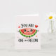 Compartilhe um pouco de doçura com este cartão "Você é um em um Melão"! Com uma melancia sorridente e fofa e corações coloridos, este design divertido é perfeito para qualquer ocasião em que você queira espalhar alegria e amor. Ideal para qualquer pessoa que ama piadas e mensagens doces, esta ilustração adorável certamente trará um sorriso ao rosto do destinatário. Seja para um aniversário, um bilhete de agradecimento ou simplesmente porque sim, este cartão encantador é uma maneira deliciosa de deixar alguém saber que eles são verdadeiramente um em um melão!