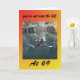 Mergulhador saltando para um lago de um penhasco com uma saudação de aniversário engraçada para um menino de 69 anos.