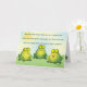 "Que a luz sempre te encontre em um dia de sonho... quando precisar estar em casa... talvez tenha coragem de arriscar... e nunca encontre sapos nas cuecas...". Apenas algumas palavras para viver nesta carta divertida e engraçada inspirada por um velho brinde irlandês. Um design de sapo divertido bonito decora este cartão. Perfeito para iluminar qualquer dia, este cartão pode ser personalizado alterando o tamanho ou alterando as mensagens nos campos de texto. Aproveite e tome cuidado com sapos nas cuecas!