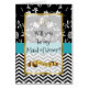 Você será meu cartão floral, azul e preto e crocante listrado.