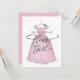 Você será minha Menina das Flores cartão de proposta de casamento cor-de-rosa elegante e fofo. Cartão personalizado para a sua menina das flores. Com um vestido clássico de menina com flores em estilo vintage. Uma maneira maravilhosa de pedir à sua menina das flores para compartilhar o seu dia especial. Um cartão de proposta de participação no casamento estiloso.