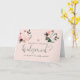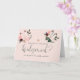 Um belo cartão dobrado de uma proposta de dama de honra que apresenta nossas flores de aquarela e saltos altos com lama profunda, e flores cor-de-rosa pinceladas com acentos de folhas verdes e esbranquiçadas e verde-verde. "Madrinha?" exibida em uma elegante design de tipografia. O cartão de proposta também diz "p.s. nós vestimos saltos muito bonitos". O Dentro apresenta um arranjo floral cor-de-rosa borrado e pincelado com saltos altos de cor-d'água verde profunda. Personalize com sua própria mensagem de proposta exibida de forma elegante. Flores de aquarela e saltos altos pintados pela Moodthologia.