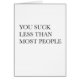 Cartão encantador do amor ou da amizade - aperfeiçoe para o dia dos namorados. "Você suga menos do que a maioria de pessoas". Tipografia limpa, moderna design baseado.