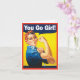 Você vai, garota! é a mensagem de encorajamento com a imagem clássica vintage da forte mulher Rosie, a rebitadora "Nós podemos fazer isso" do cartaz da Segunda Guerra Mundial. Cartão de encorajamento para mostrar apoio a alguém que está enfrentando um desafio de qualquer tipo.