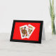 Uma fotografia de uma Rainha de Paus e um Rei de Copas olhando um para o outro é o ponto focal do meu cartão de aniversário "Vocês Foram Feitos Para Ficar Juntos - Está Nos Cartões". Os cartões se destacam bem contra um fundo vermelho brilhante com uma borda preta.