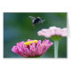 Uma Bumblebee em voo coletando pólen da zinnia para a zinnia.