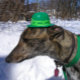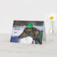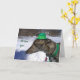 Tami, uma linda galga cinza toda pronta para ir atrás daquele pote de ouro! Cartão perfeito para quem ama galgos ou é louco por cachorros. Celebre o uso do verde enviando este cartão divertido! "Vou Corrida Você!" é de uma fotografia original e está sob meu direito autoral.