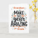 Encoraje seu neto com este cartão ousado de volta à escola só para ele quando ele começar a 7. A frente apresenta a mensagem elevatória "Torne este ano incrível" com sotaques lúdicos e laranja, além de sua nota e relação para um toque pessoal. Uma maneira perfeita de animá-lo por um ano escolar confiante e bem sucedido.