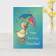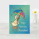 Cartão Vovô Pato de aniversário com guarda-chuva em chuva