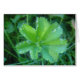 Wassertropfen grandes numa folha bem parecida de abrigo de mulher antes de pano de fundo verde de pasto são ser ver em este cartão a. O cartão é em branco.