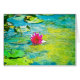 Um lírio de água fuchsia com folhagem de verde limão em água turquesa.