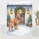 Share warm seasonal greetings with this cozy Christmas card featuring a Belgian Laekenois at a festive farmhouse doorway. Painted in a soft watercolor style with gentle snow and rustic holiday decorations, this card brings a charming winter mood dog lovers will adore. The blank interior provides room for personal messages, making it perfect for gifting, seasonal stationery, and breed-themed collections.