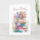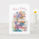 Um cartão de aniversário de livrantes com uma bela pilha de livros e flores de aquarela. Uma manutenção de aniversário única para o leitor de livros em sua vida.