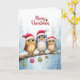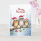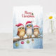 Cartão Watercolor Cute Owls Whimsical Christmas Folded