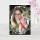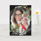 Cartão de Saudação de Natal | Watercolor Holly e Red Berries - Alegria na caligrafia dourada - com uma estrutura em forma de ouro no estilo geométrico preto que rodeia a sua fotografia 5x7 na frente com a sua mensagem de feriado dentro - Arte Original © pela WhimsicalArtwork™ Esta é parte de uma mistura e corresponde à Holiday Watercolor Holly e à Red Berries Collection.