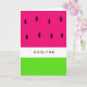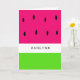 Um cartão de aniversário de melancia, que você pode personalizar a frente com o nome dela. O Dentro lê uma mensagem, que você pode facilmente editar se quiser. Este cartão de melancia seria excelente para o aniversário de verão de uma criança.