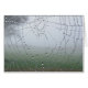 Uma Web de aranha esboçada no orvalho da manhã parece quase ser vidro girado. O campo nevoento no fundo mostra com sua Web.