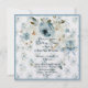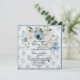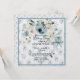 A beautiful wedding shower invitation in blue floral, surrounded by a circular and square frame on the front.