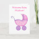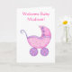 Cartão Welcome Baby Girl Name Personalized Pink Buggy