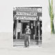 West Danville, Vermont, 1942. Frank Goss, fazendeiro de setenta e um anos, em frente à loja geral e ao escritório poste de Gilbert S. Hastings lendo seu correio, que inclui um cartão postal dizendo que o homem contratado do último ano "não estará por perto por ter falhado este ano por estar na Califórnia no Marinho".