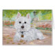 Sombras vestidas em uma tarde no Parque fornecem um pano de fundo para este Terrier Branco da Highland Ocidental. Um momento de descanso e estaremos de novo! Mande saudações para seus amigos estilo Westie com beleza e cor! Todas as vendas apoiam o West Highland White Terrier Rescue!