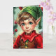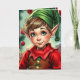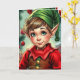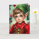 A sweet personalized Christmas card with a cute elf cartoon and a festive background. On the inside you can add your own special holiday greeting and names.
