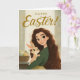 Cartão Whimsical Girl and Baby Bunny Easter Greeting