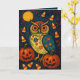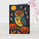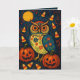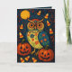 Cartão Whimsical Halloween Owl Folk Art Candy Corn Night