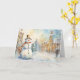 Cartão Whimsical Snowman in a Snowy Village Greeting