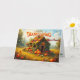Celebrate the season of gratitude with this charming Thanksgiving greeting card. The artwork depicts a whimsical little house made entirely of vegetables and fruits—pumpkins, eggplants, cucumbers, corn, apples, pears, peaches, cherries, and fresh herbs—nestled among grass and flowers in an impressionist oil painting style. Across the scene, bold festive calligraphy declares “HAPPY THANKSGIVING,” making this design both playful and heartwarming. Perfect for sharing holiday cheer with friends and family, this card combines creativity, color, and the true spirit of Thanksgiving.