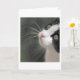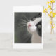 Este doce cartão para amantes de gatos e donos de gatos mostra uma fotografia de perto do rosto adorável de um gatinho preto e branco. O gato está olhando para o céu e tem uma expressão muito confiável em seu rosto. Ele está muito orgulhoso dos seus belos bigodes e esta foto mostra-os em vantagem de cheio!