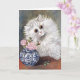 Um cartão de vazio com a pintura do artista britânico Louis Wain (1860-1939), White Cat. Um belo retrato de um gato persa branco próximo a um vaso de porcelana azul e branco com rosas rosa. Wain era conhecido por suas ilustrações de gato de olhos grandes.