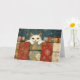Cartão White Cat Peeking over Christmas Gifts Greeting