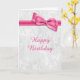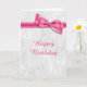 Cartão White Damask & Hot Pink Faux Bow Female Birthday
