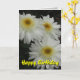 Este é um cartão de aniversário de design de Arte Reitora Johnson Fine com flores brancas bonito de Gerber Daisy à luz da manhã. Este cartão é personalizável com um modelo de texto de aniversário feliz amarelo na frente com um fundo de flor branca e está pronto para a sua mensagem personalizada dentro no cartão. O dentro da placa é personalizável com um modelo de texto. Gracias por apoiar minha loja Zazzle.