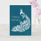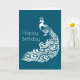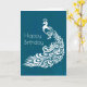 Cartão White Peacock no Teal Happy Birthday