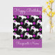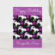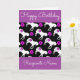 White ponies birthday card, a custom birthday card with a white pony pattern on black, with purple flowers.