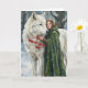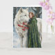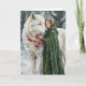 Cartão White Wolf Redhead Druid Winter Berries Fantasy Ar