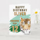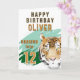 Wild Tiger Head Watercolor Birthday Card. This personalized birthday card features a tiger graphic and bold 'ROARING INTO' text, alongside 'HAPPY BIRTHDAY'. Perfect for adding a wild touch to the special day. The vibrant design and custom name make it a standout choice for anyone who loves tigers and adventure.