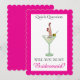 Will you be my Bridesmaid? Hot pink background. Martini glass. Both image and text are editable.