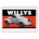 Imagem reworked Digital de um piloto 1941 do arrasto de Willys no fundo de vermelho e de preto com grande palavra branca "WILLYS".