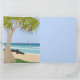 Esta design traz vibrações calmas na praia com vista a surfistas de folhas de asa, debaixo do pândanus.